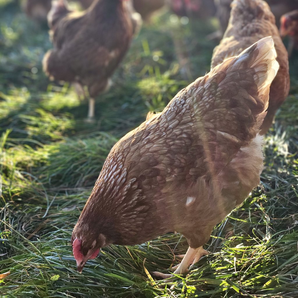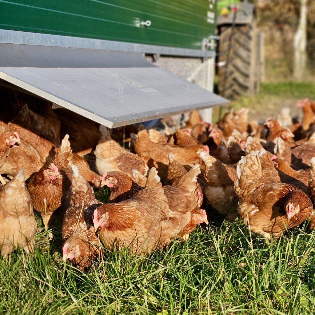 Naše slepice žijí celoročně na pastvině, po které pravidelně posouváme moderní mobilní kurník s čistou pitnou vodou a krmením. Slepice tak mají bezpečné a pohodlné zázemí pro nocování i snůšku vajec.